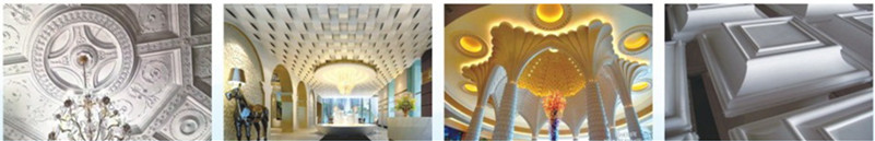 制成各種平面板、各種功能型產品及各種藝術造型,如高檔會所內外墻,羅馬柱、大型 石膏吊頂。